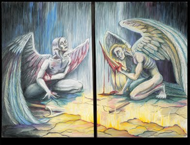 It was inspired by the Oscar Wilde fairy tale, "The Star-Child." The title character is a beautiful but arrogant young man who wanders the world until he learns humility (greatly over-simplified retelling, feel free to check it out at http://www.eastoftheweb.com/short-stories/UBooks/StaChi.shtml. It's wonderful, like all Wilde's fairy tales). I wanted to draw a beautiful and ethereal man, as untouchable as a star. I don't know how well I succeeded, but I enjoyed trying. I'm getting much better at making my digital art look like my pencil work. The hardest part is still getting the printer and the screen to show the same image.